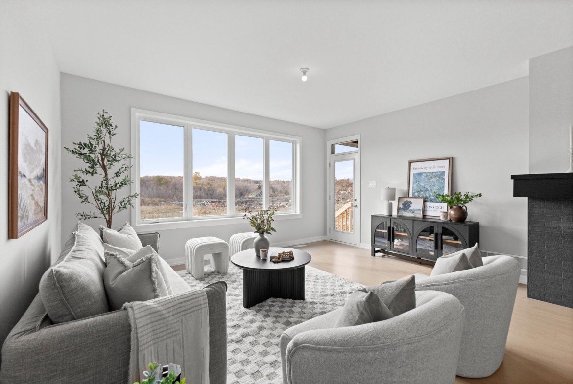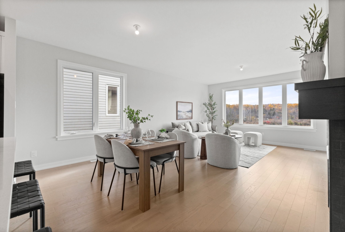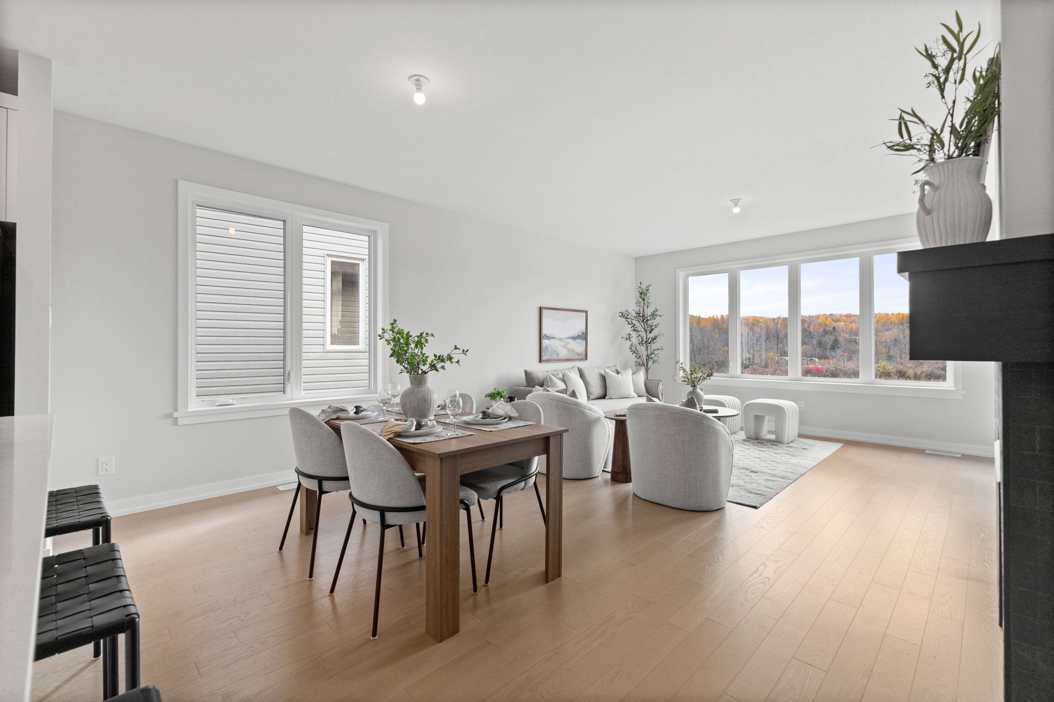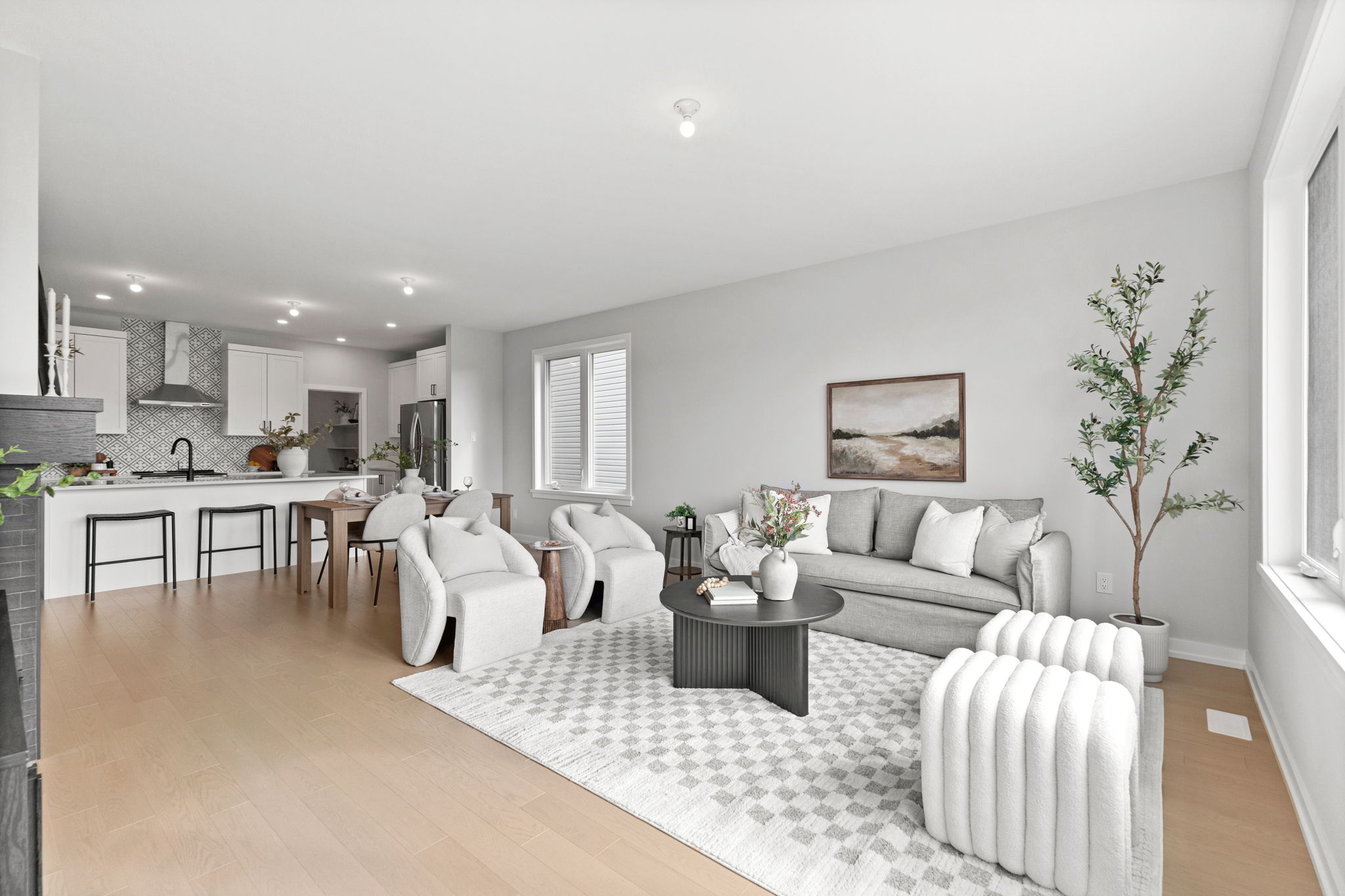 Brand New Cardel Home with Full Tarion Warranty and Quick Closing! Exceptional 1500 SF Bungalow with designer-selected finishes and numerous upgrades will be ready for you early in the new year. Spacious 2 bedroom, 1.5 bath open-concept home boasts a fantastic flow and thoughtful layout. Kitchen w/ extended upper cabinets, Quartz countertops, decorative backsplash and walkthrough pantry overlooks family room w/ beautiful fireplace surround. Convenient main floor den and laundry/mudroom. Relax on the covered front porch or the large southwest-facing covered back deck—perfect for enjoying sunrise and sunset. Generous primary bedroom includes a 5-piece ensuite, two closets (one walk-in), and large windows overlooking the deck. Located just east of Orleans in a peaceful village near river and wooded parkland, this home offers the tranquillity of a village life with urban amenities. Taxes for land only; property to be reassessed. Offers reviewed during business hours, 24-hr irrevocable.