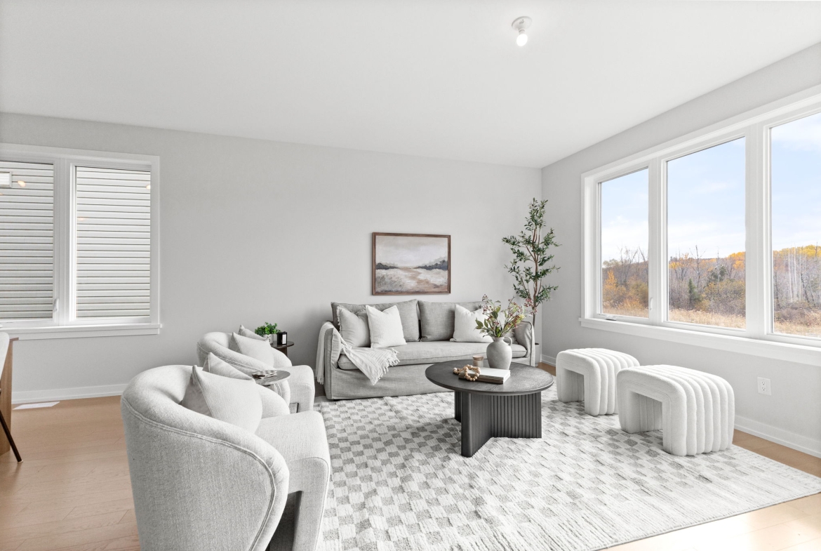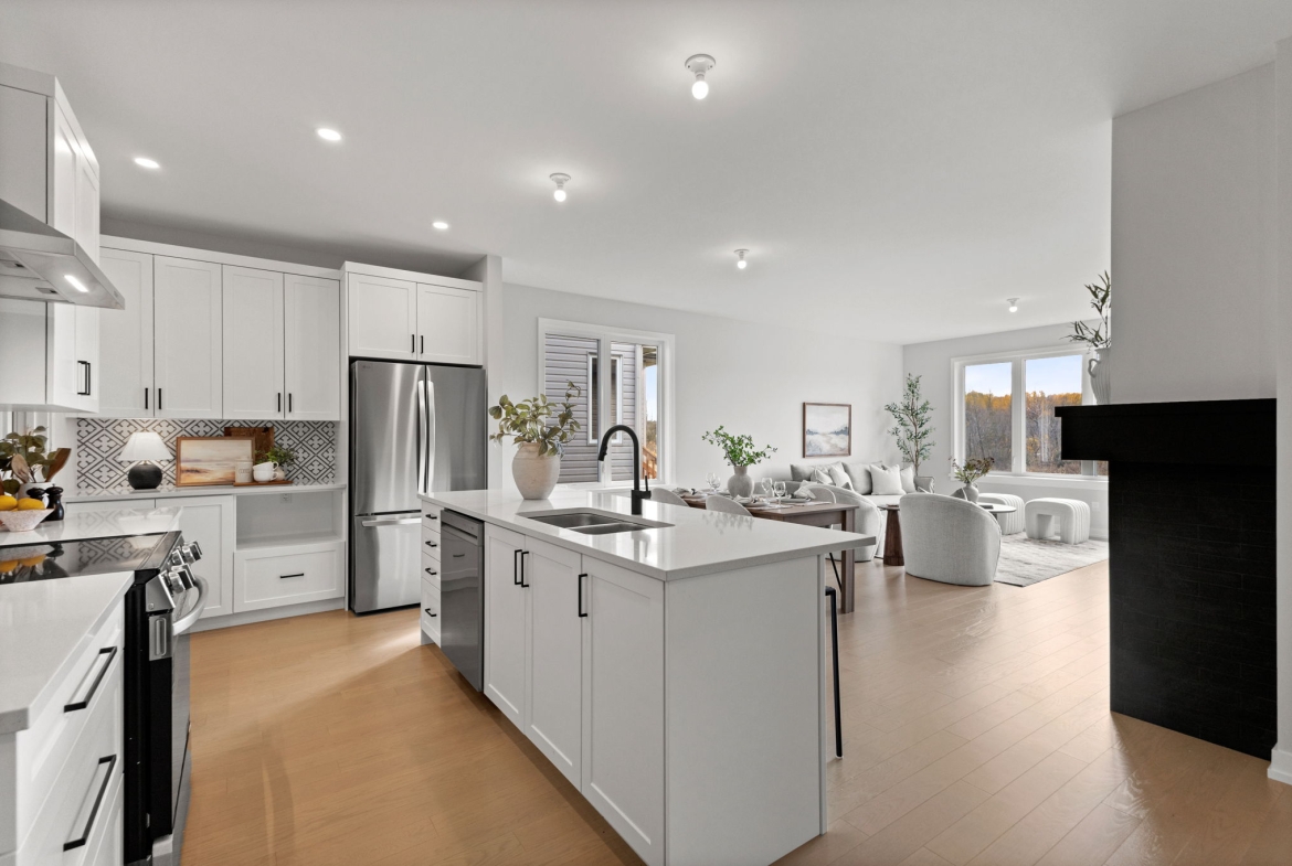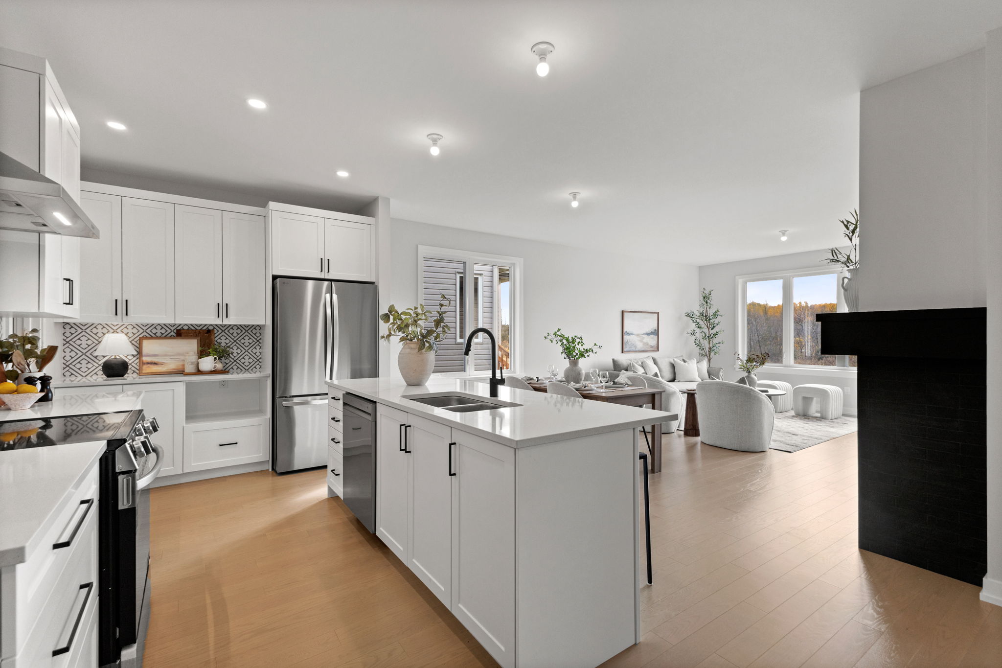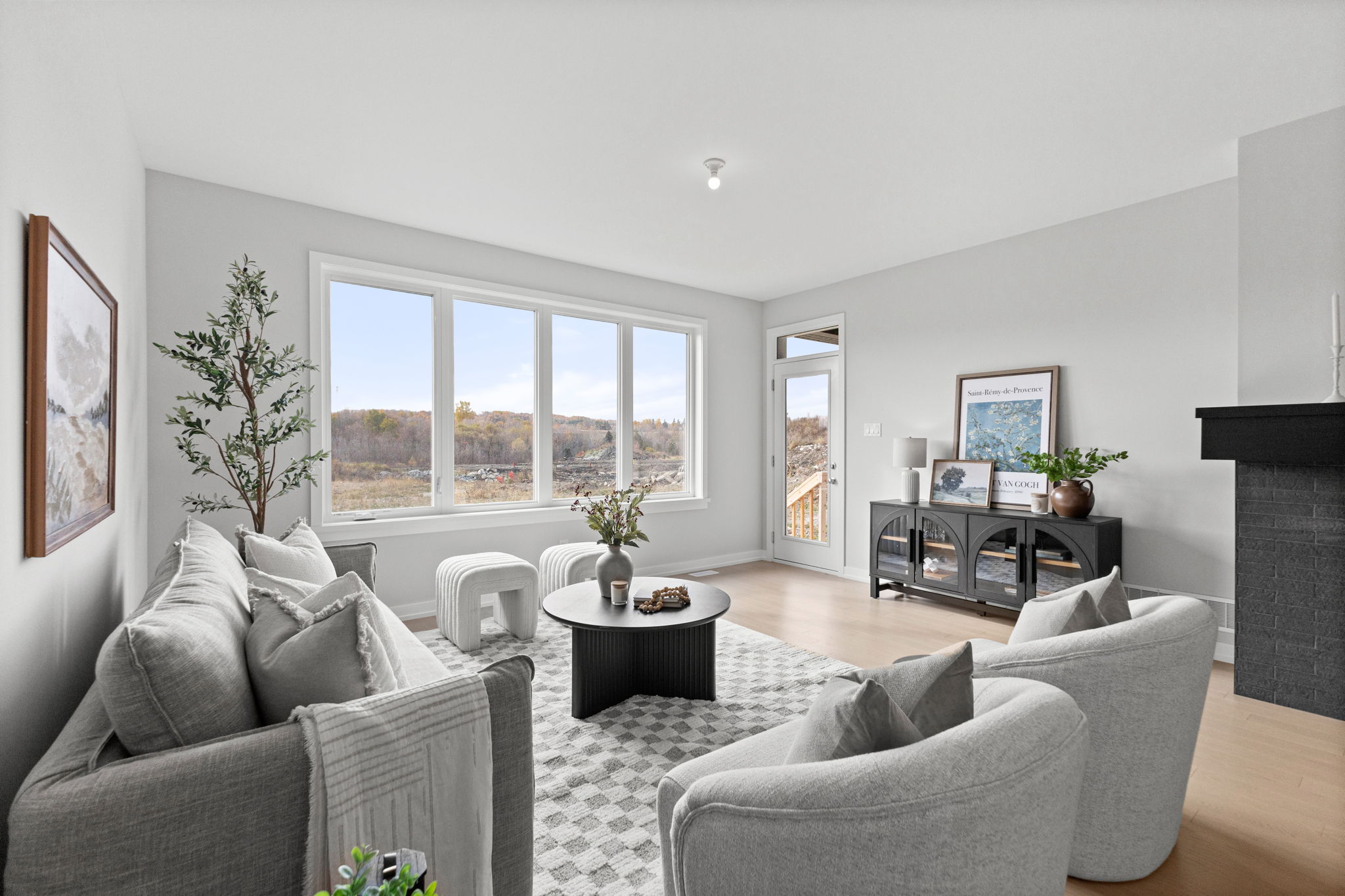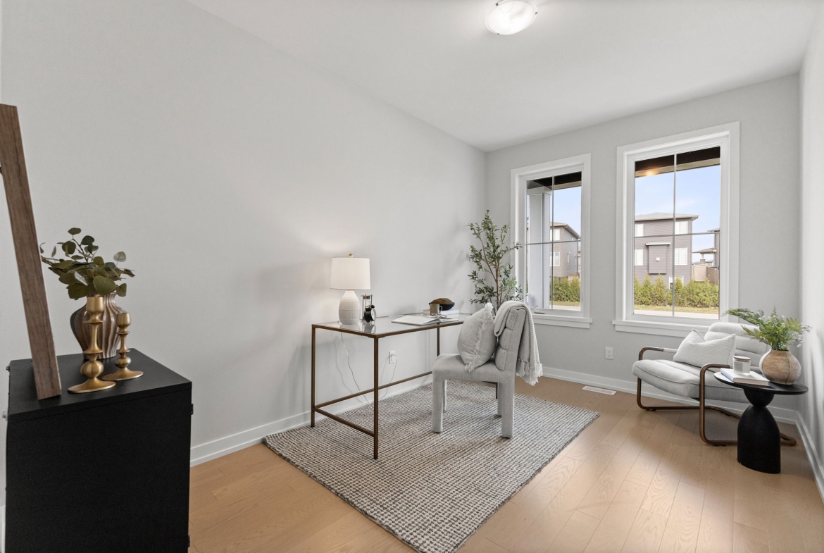 Brand New Cardel Home with Full Tarion Warranty and Quick Closing! Exceptional 1500 SF Bungalow with designer-selected finishes and numerous upgrades will be ready for you early in the new year. Spacious 2 bedroom, 1.5 bath open-concept home boasts a fantastic flow and thoughtful layout. Kitchen w/ extended upper cabinets, Quartz countertops, decorative backsplash and walkthrough pantry overlooks family room w/ beautiful fireplace surround. Convenient main floor den and laundry/mudroom. Relax on the covered front porch or the large southwest-facing covered back deck—perfect for enjoying sunrise and sunset. Generous primary bedroom includes a 5-piece ensuite, two closets (one walk-in), and large windows overlooking the deck. Located just east of Orleans in a peaceful village near river and wooded parkland, this home offers the tranquillity of a village life with urban amenities. Taxes for land only; property to be reassessed. Offers reviewed during business hours, 24-hr irrevocable.