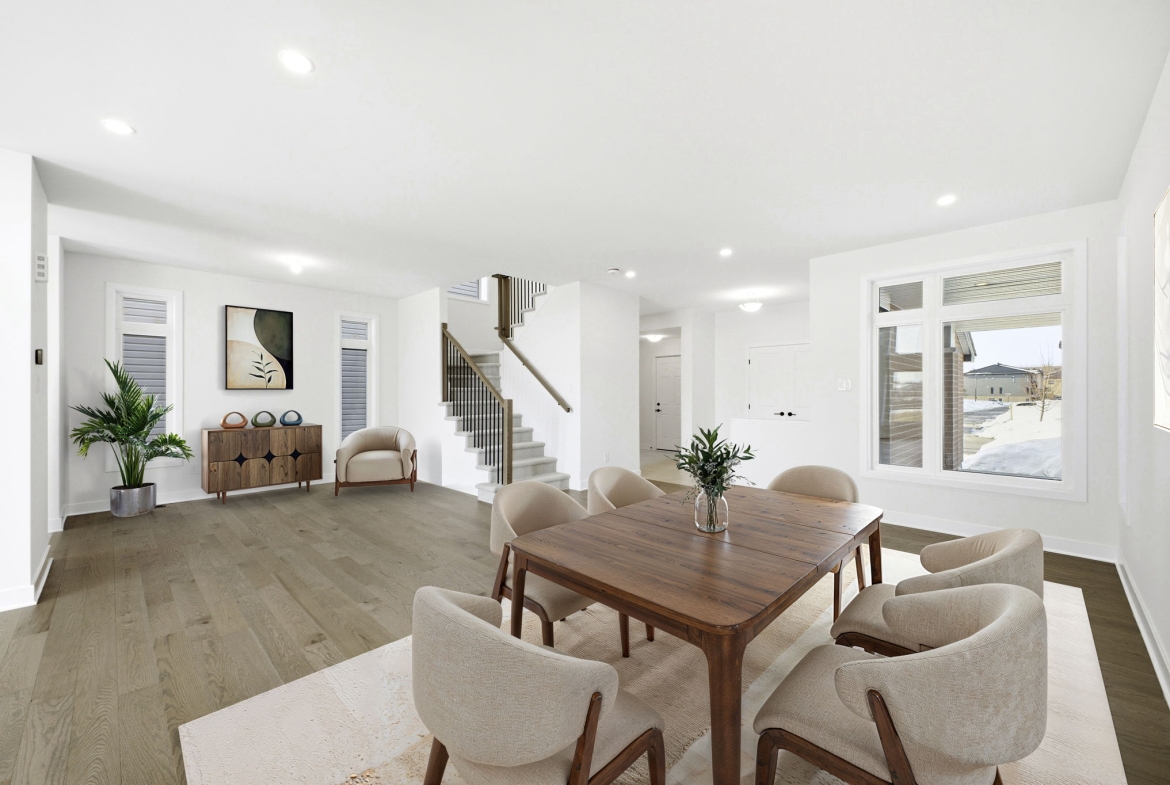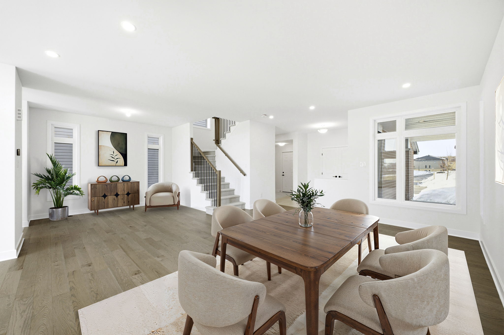 Designed for families who value comfort, efficiency, and forward-thinking living, this Net Zero Ready two-storey home by Urbandale is ENERGY STAR and R-2000 certified, and offers approximately 2,900 sq ft of thoughtfully planned space. Engineered to consume up to 80% less energy than conventional standards, it helps reduce long-term costs and its carbon footprint. The main level is bright and welcoming, centred on a kitchen overlooking the great room, living room, and dining area. It balances style and function with a two-tone palette, generous island, and streamlined wall pantry. The striking two-storey great room opens to the sun-filled, south-facing yard, creating a connected, open layout ideal for family life and entertaining. Upstairs, three well-sized bedrooms are complemented by a generous loft, perfect for a home office, reading nook, or shared family space. The primary suite features a five-piece ensuite and walk-in closet, while a conveniently located laundry keeps daily routines efficient and contained. The finished lower level, bright with natural light, provides additional flexible space. Efficiency is enhanced by Builder X’s Solar Energized Package, featuring a 5-kW rooftop solar panel system and 200-amp electrical service, making the home ready for electric vehicles. Complete with a high-efficiency air source heat pump, two-car garage, and covered front porch. Nicely located close to parks, schools, transit, and amenities, this home offers a modern lifestyle rooted in sustainability and smart design. Some photos have been virtually staged.