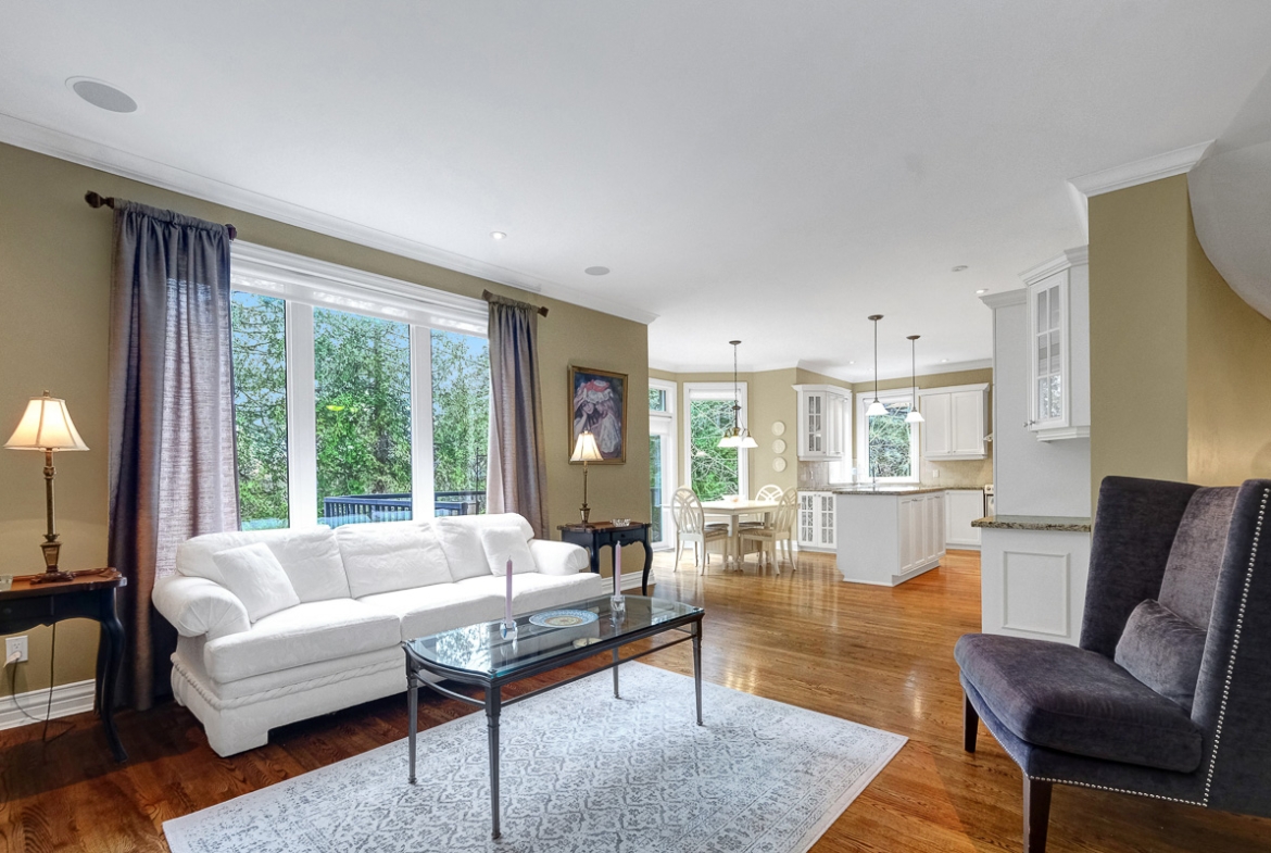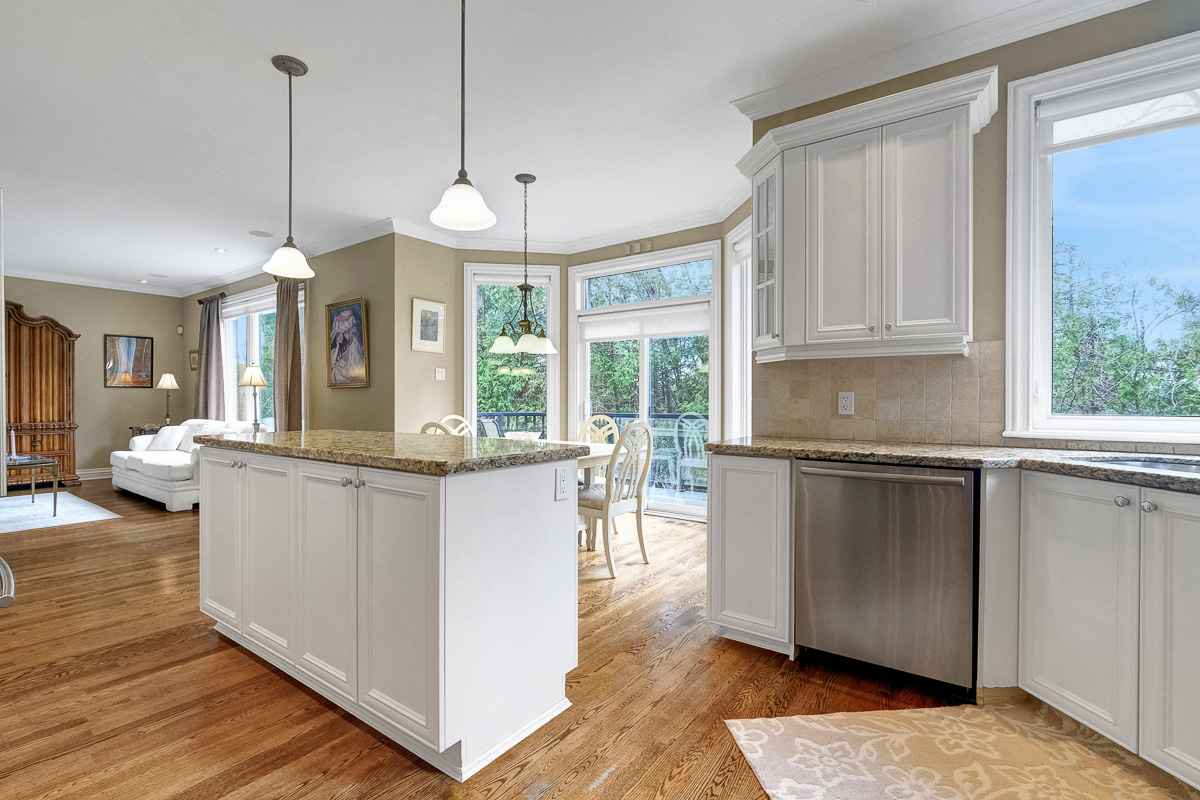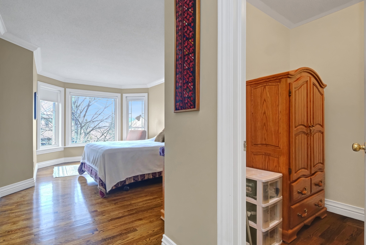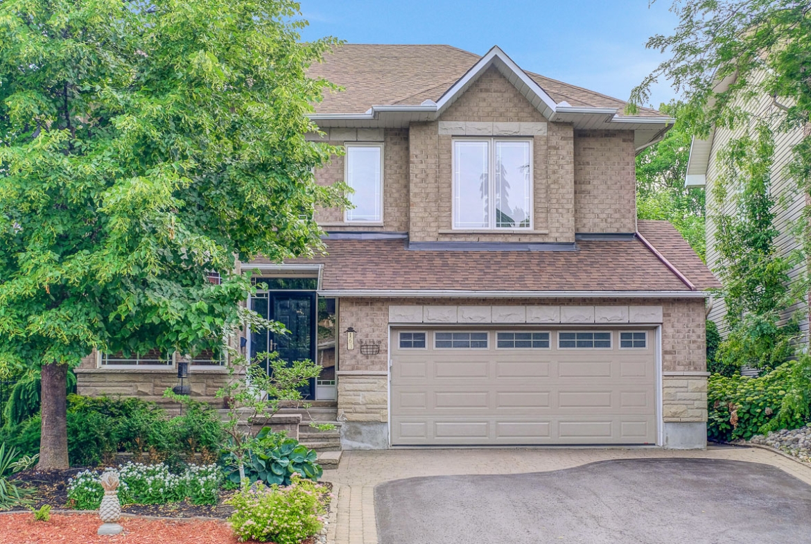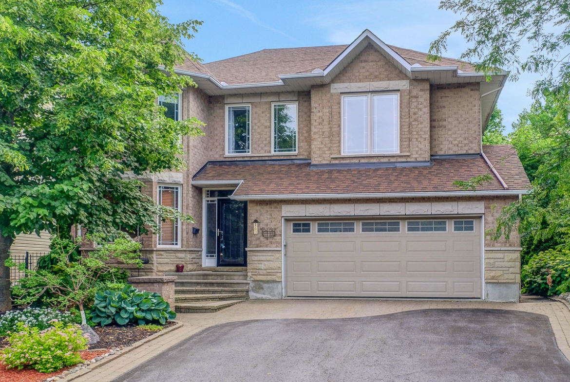 Backing onto a tranquil ravine, this timeless 4-bed / 3.5-bath home in prestigious Quarry Ridge offers nearly 5,000 sq. ft. of living space, including a finished walk-out basement. This grand two-storey home showcases elegant finishes: 9’ ceilings, rich hardwood and tile flooring, crown moulding, and striking circular staircases. The main level offers a dedicated office, formal dining room with soaring ceiling, and a dual-sided fireplace shared between the living and family rooms. The spacious kitchen with granite counters overlooks the family room and opens to a private deck with ravine views. The upper level boasts an expansive primary suite with a walk-in closet and 5-piece ensuite, plus three additional bedrooms, a full bath, and a large laundry room. The finished walk-out basement features a kitchenette, full bath, and patio access perfect for teens, an in-law suite or potential SDU. The landscaped backyard spans over 60 feet wide, offering plenty of space to relax or entertain. Additional highlights include interlock walkway and yard, irrigation system, and newer roof and A/C. Ideally situated near schools, parks, trails, dining, shopping, and public transit, including the LRT opening soon!