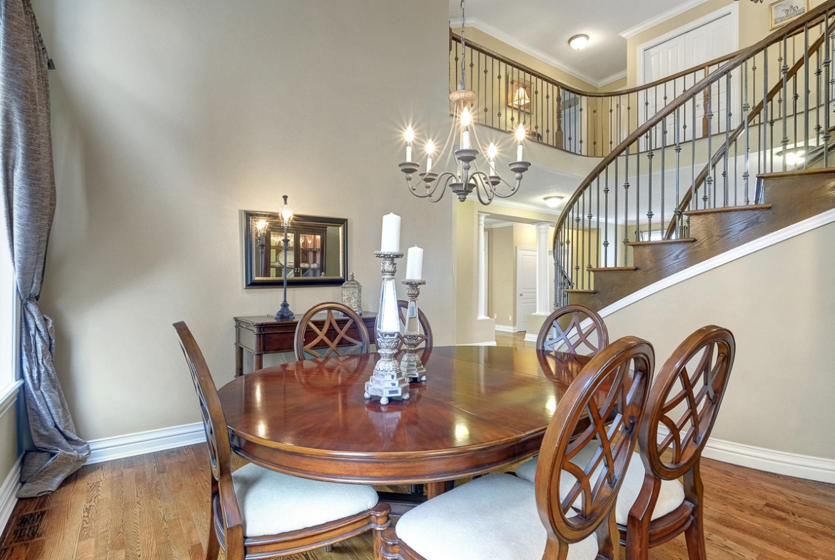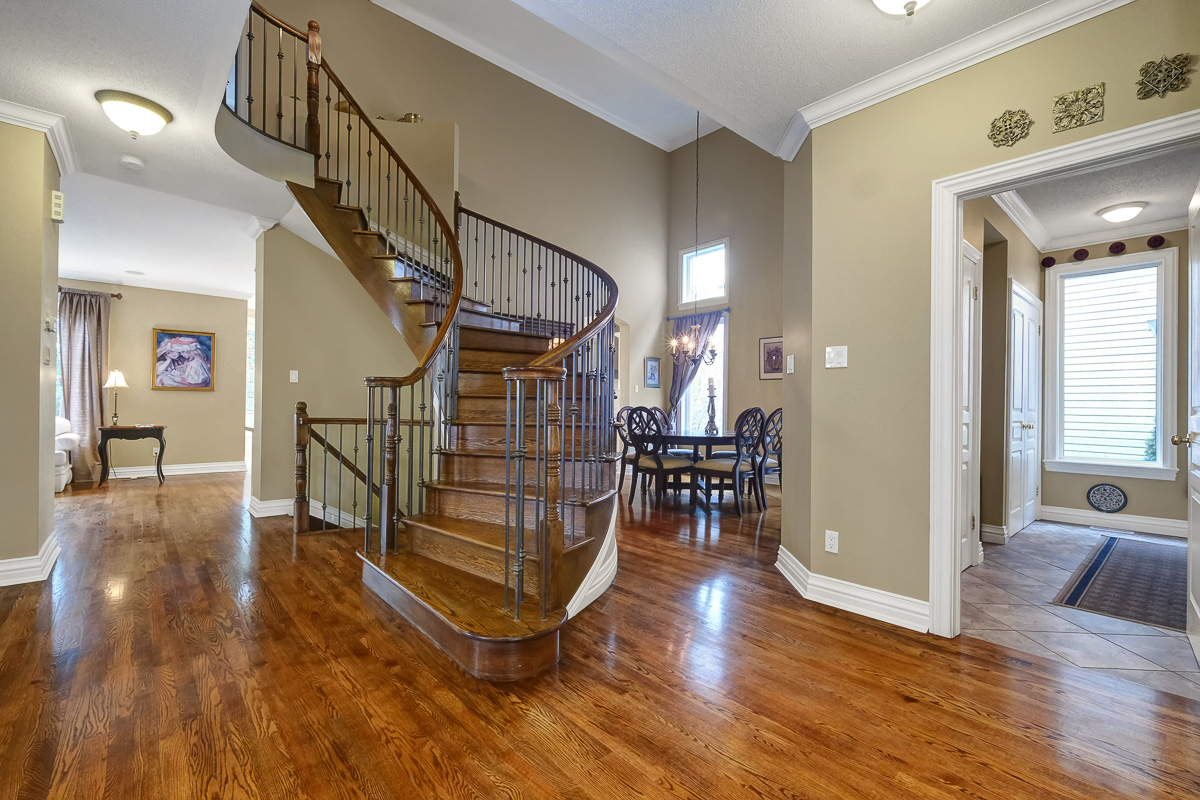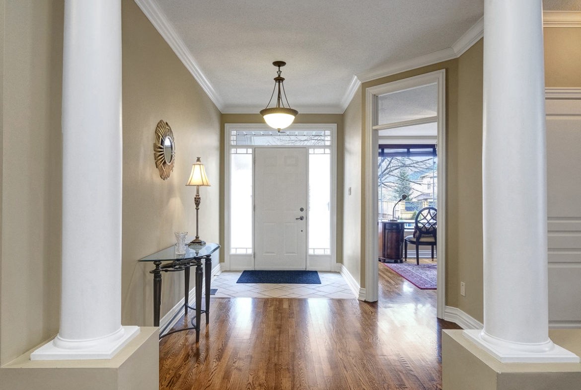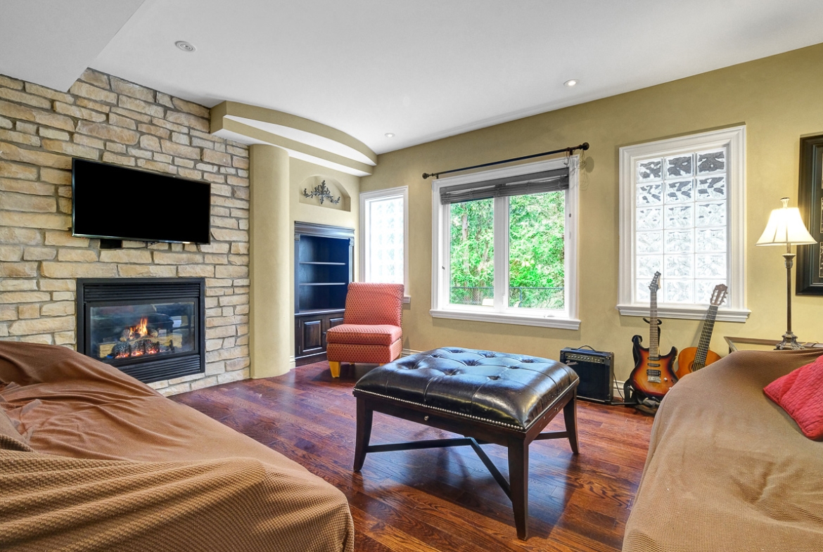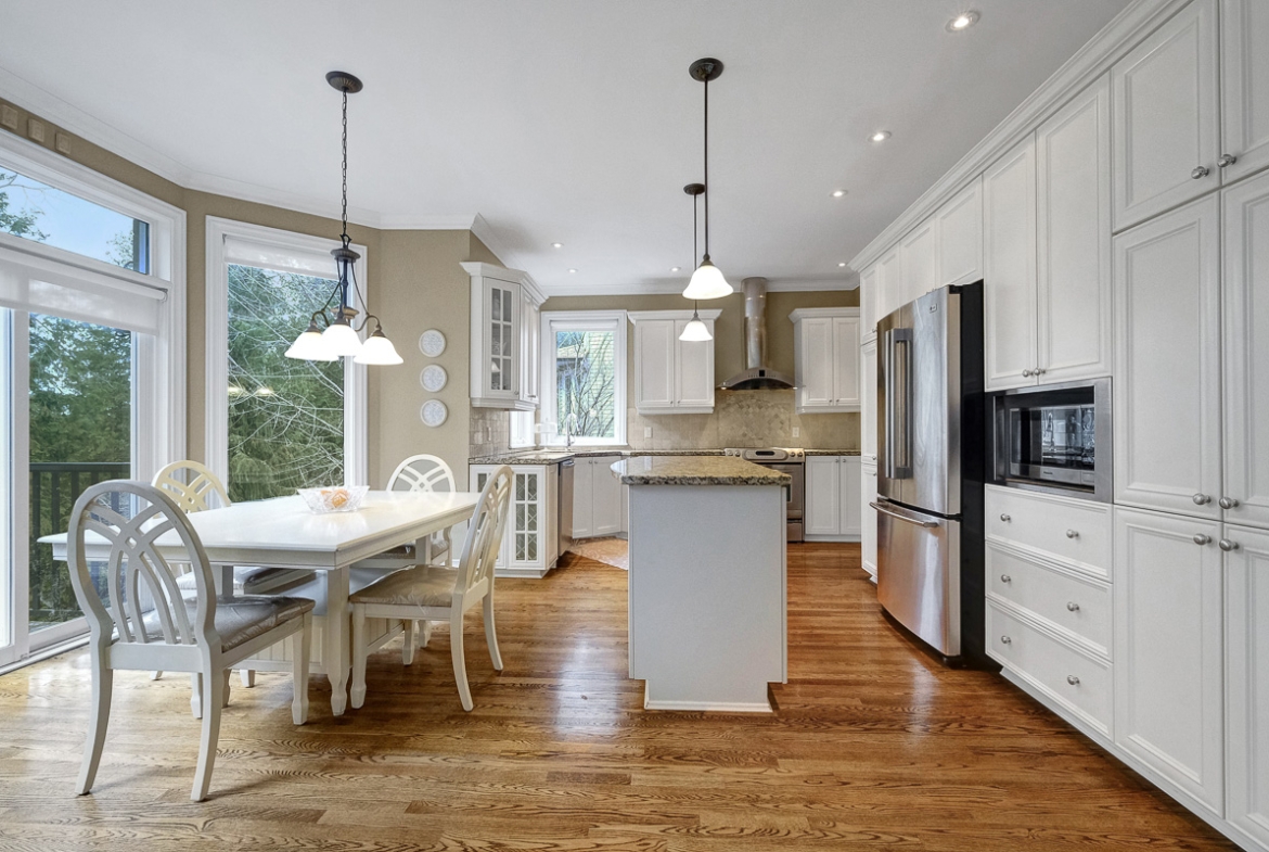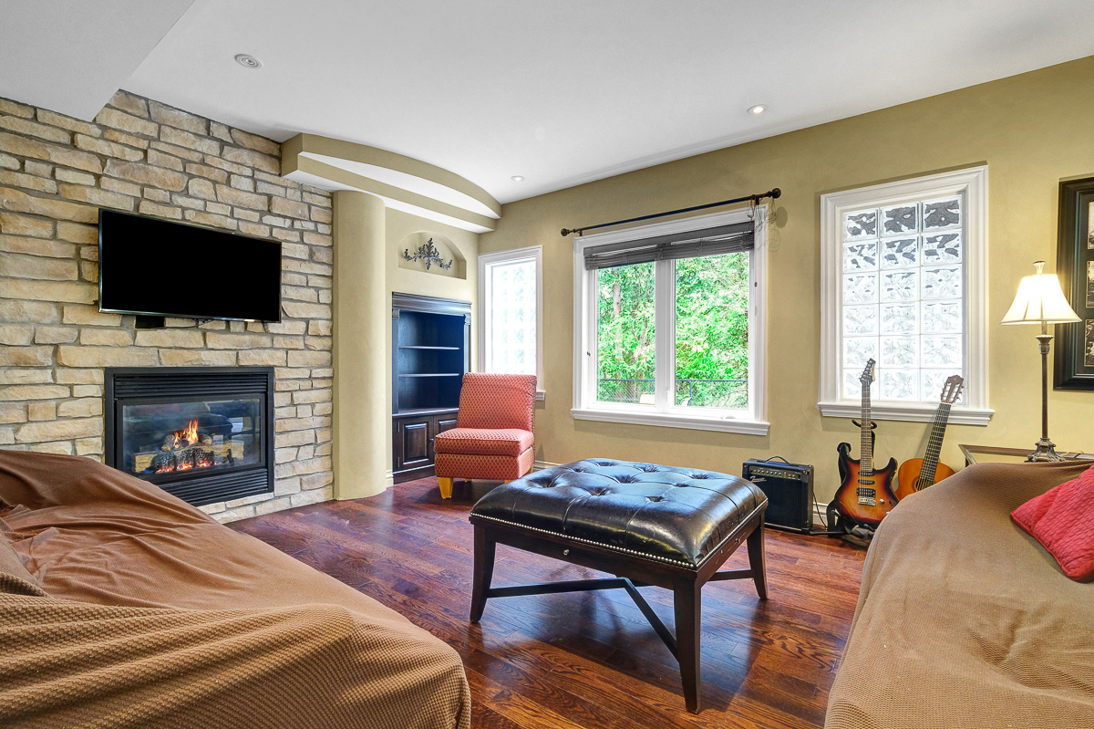 Backing onto a tranquil ravine, this timeless 4-bed / 3.5-bath home in prestigious Quarry Ridge offers nearly 5,000 sq. ft. of living space, including a finished walk-out basement. This grand two-storey home showcases elegant finishes: 9’ ceilings, rich hardwood and tile flooring, crown moulding, and striking circular staircases. The main level offers a dedicated office, formal dining room with soaring ceiling, and a dual-sided fireplace shared between the living and family rooms. The spacious kitchen with granite counters overlooks the family room and opens to a private deck with ravine views. The upper level boasts an expansive primary suite with a walk-in closet and 5-piece ensuite, plus three additional bedrooms, a full bath, and a large laundry room. The finished walk-out basement features a kitchenette, full bath, and patio access perfect for teens, an in-law suite or potential SDU. The landscaped backyard spans over 60 feet wide, offering plenty of space to relax or entertain. Additional highlights include interlock walkway and yard, irrigation system, and newer roof and A/C. Ideally situated near schools, parks, trails, dining, shopping, and public transit, including the LRT opening soon!