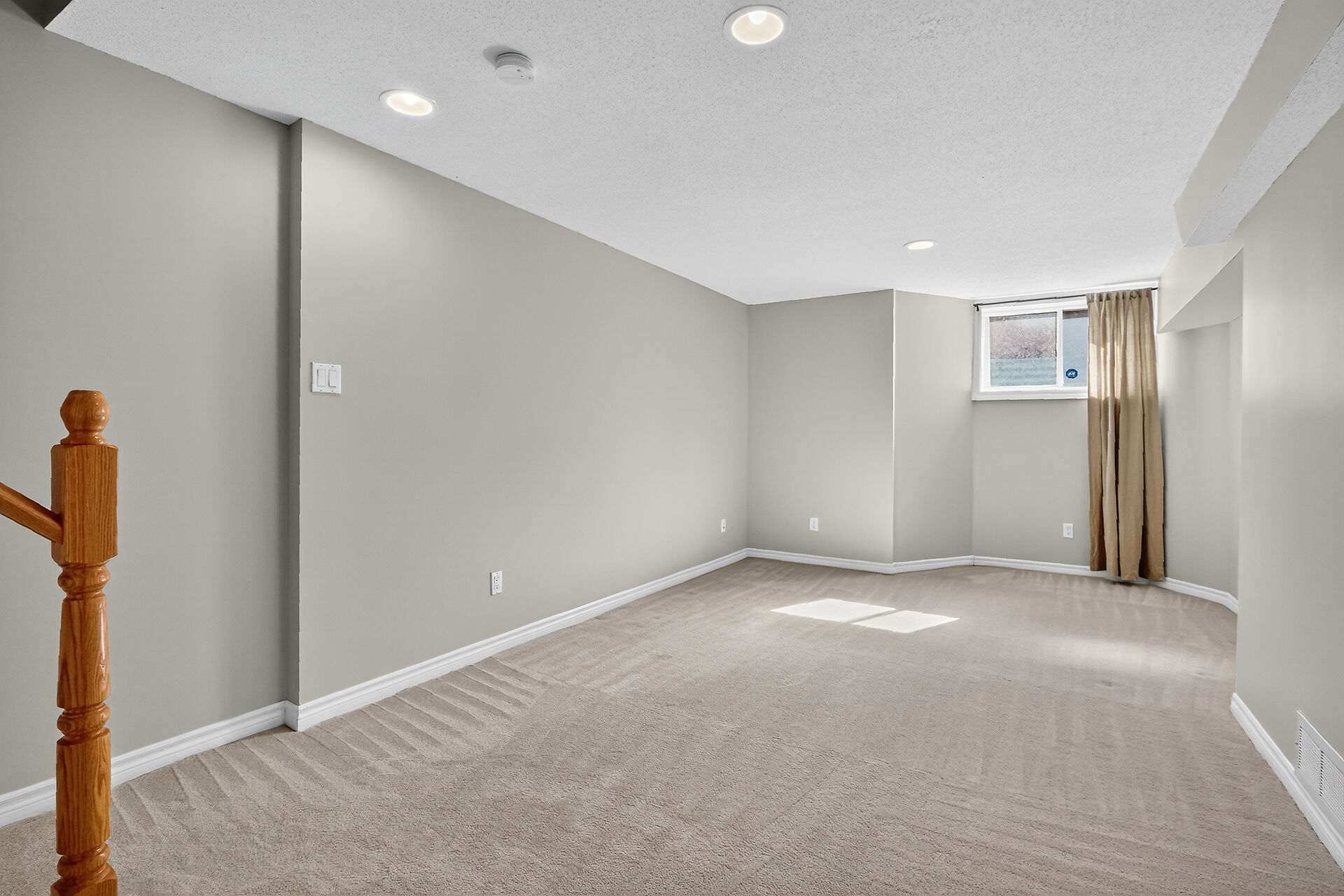 Opportunity is knocking!! Great 3 bedroom townhouse available now. Be comfortably settled in your new home before Christmas. Great location close to all amenities, schools and parks. This freshly painted little gem will delight first time buyers and downsizers alike. Enjoy the single car garage PLUS an extra long driveway that can easily accommodate two more vehicles…a rarity in townhomes. The main floor offers an eat in kitchen, powder room and a cozy living/dining area. Three good size bedrooms and a full bath complete the second level. The basement boasts a recreation room, storage room as well as a rough-in for a full bath!! Like spending time outside?…Wait until you see the size of this backyard! Book your showing today and don’t miss out! |